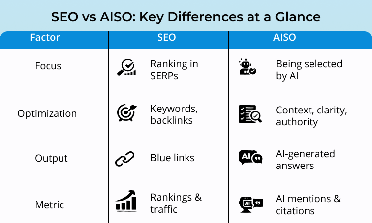SEO vs AISO: Key Differences at a Glance
